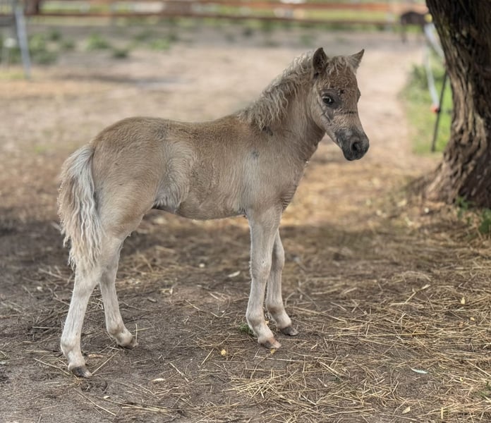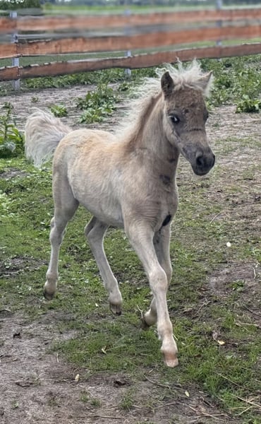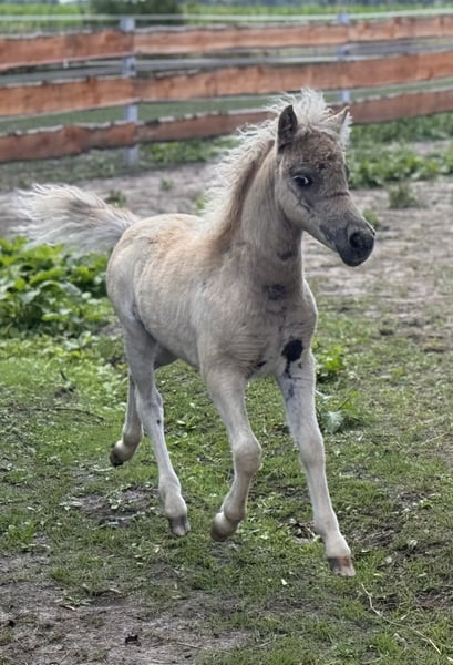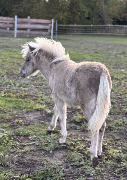 5* Home Wanted!!! I am looking for a great new home for my little "Silver Snowflake von der Prignitzweide" starting mid-November. Snowflake is a German Partbred Shetland pony with papers. He was born in May 2025. He has a relatively rare color; he is a silver-black tiger spotted pony and homozygous (purebred) black, which means he will not produce chestnuts. Snowflake has two small white spots and will continue to develop his markings as he ages. A wonderful little guy who is already showing off his great gaits. His final height will be around 105 cm. His mother is the state premium/ performance mare/ champion mare Flora vom Gothensee, who successfully completed her performance test with a dream score of 8.78. His father is the licensed and performance-tested stallion Sun Dancer. His half-brother from last year was the reserve champion of the foal championship in Redefin 2024, receiving a score of 10 three times for movement and is currently in stallion training. I would also love to place this wonderful boy in the hands of a breeder, but that is of course not a must. Until his departure, he will get to know everything that is part of the foal ABC. Additionally, he will be presented at the foal show. Snowflake will be regularly dewormed and trimmed. If you are interested in this wonderful little man, please feel free to reach out.