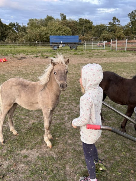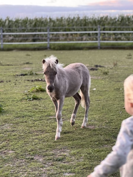 5* Thuis gezocht!!! Ik ben op zoek naar een geweldig nieuw thuis voor mijn kleine "Silver Snowflake van de Prignitzweide" vanaf medio november. Snowflake is een Duitse Partbred Shetlandpony met papieren. Hij is geboren in mei 2025 en heeft volledige papieren!!! Hij heeft een relatief zeldzame kleur, hij is een zilver- zwart- tijgerbont en homozygoot (reinerbig) zwart, wat betekent dat hij geen vosjes kan voortbrengen. Snowflake heeft twee kleine witte stippen en zal met de leeftijd steeds meer doorgetekend worden. Een geweldige kleine kerel die nu al zijn prachtige gangen laat zien. Zijn eindmaat zal ongeveer 105 cm zijn. Zijn moeder is de Staatsprämien/ prestatie-merrie / winnaar merrie Flora van de Gothensee, die haar LP met een droomcijfer van 8,78 succesvol heeft behaald. Zijn vader is de goedgekeurde en prestatie-geteste hengst Sun Dancer. Zijn halfbroer van vorig jaar werd reservekampioen van het veulenkampioenschap in Redefin 2024 met 3 x het cijfer 10 voor beweging en bevindt zich in hengstopfok. Ik zou deze geweldige jongen ook graag in fokkershanden willen geven, maar dat is natuurlijk geen must. Tot zijn vertrek zal hij alles leren wat bij de veulen ABC hoort. Daarnaast zal hij ook op de veulenkeuring worden gepresenteerd. Snowflake wordt regelmatig ontwormd en afgerond. Als u interesse heeft in deze geweldige kleine man, neem dan gerust contact met mij op.