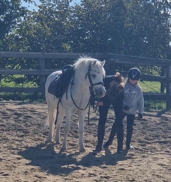 Super lieve sneeuwwitte pony ruin te koop! Snowy is 8 jaar oud en 125 cm groot en wordt recreatief gereden + ook een- en tweespännig gereden. Hij is super lief en braaf in de omgang, geeft heel gemakkelijk al zijn 4 hoeven en laat zich door kinderen en jongeren borstelen, verzorgen en rijden. Je kunt hem met of zonder zadel rijden - maakt niet uit, hij loopt probleemloos zijn rondjes. Ook is hij super massief gebouwd en kan hij grotere ruiters goed dragen. De ruin heeft een mooie brede, massieve rug - en is super geschikt voor therapie of rijpedagogiek! Hij kent zowel de open stal als de box en loopt zonder ijzers. Voor meer informatie, foto's en video's graag op aanvraag via WhatsApp.