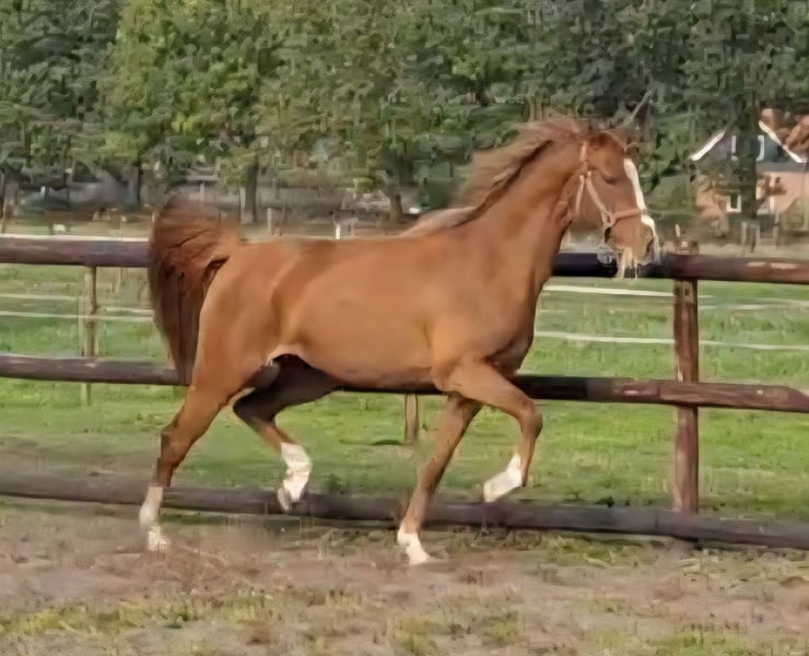 Wegen Umständen werden wir stark verkleinern, daher bieten wir eine sehr gut bewegende 2,5-jährige - (fast 3-jährige) Fuchsstute zum Verkauf an. Heimolen's Felicia ist eine 2,5-jährige Fuchsstute von etwa 145 cm Größe. Sie ist die Tochter des gekörten schwarzen Welshhengstes Old Avenue's Cezar. Old Avenue's Cezar wurde nach Amerika verkauft. Die Mutter ist die MEHRFACHEN NAT. CHAMPION Vrl KEUR + PREFERENTE Stute BELICIA. Aus dieser Stute stammen VERSCHIEDENE CHAMPIONS, unter anderem der NRPS Dressur CHAMPION Hengst HARVEY'S DREAM OF GOLD und der Gesamtsieger der Dutch Pony Championship 2023: DURELLO. Durello war während der Elite Dressage Pony Sales der TEUERSTE verkaufte Auktionshit: (25.000)!! Belicia ist auch die Mutter der 3-jährigen nationalen Reservechampion Vrl KEUR-Stute: Heimolens Sparklings Lizzy. Felicia ist dank ihrer SEHR STARKEN BEWEGUNGEN eine sehr interessante und auffällige BLIKVANGER sowohl für die Zucht als auch als Sportpony!! Sie wird wahrscheinlich die ideale Stockmaß von 1,47 - 1,48 m erreichen. Für weitere Informationen bitte anrufen! Twan: 00 31 6 53 47 22 60